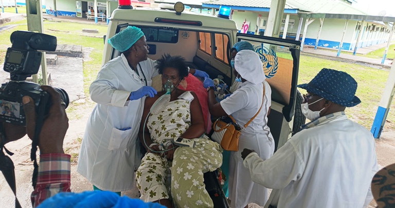 La défunte Maryse Lydie Adchian durant son évacuation de Port-Gentil vers Libreville © Gabonactu.com