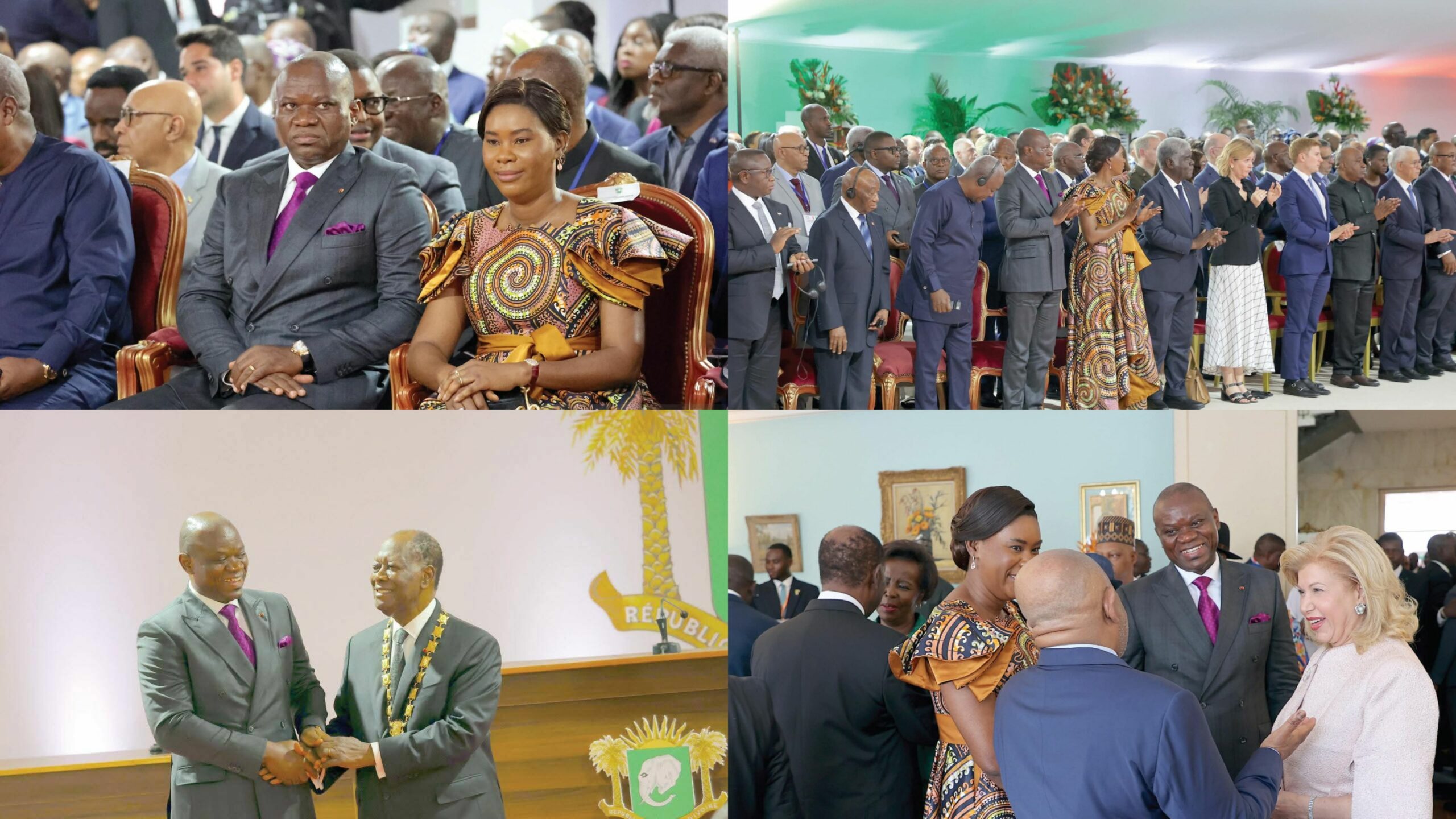 Devant la Présidente du Conseil constitutionnel, Chantal Nanaba Camara, le président réélu a prêté serment, main droite levée, jurant « de respecter et défendre fidèlement la Constitution, d’incarner l’unité nationale et de préserver l’intégrité du territoire » .Réélu avec 89,77 % des suffrages, Alassane Ouattara a ensuite reçu l’insigne de Grand Maître des Ordres nationaux, avant de prononcer une allocution dans laquelle il a salué la maturité démocratique du peuple ivoirien et la participation de tous les candidats au processus électoral. « Ce vote est bien plus qu’un acte civique ; il témoigne de la confiance en un État tourné vers la modernité », a-t-il souligné .