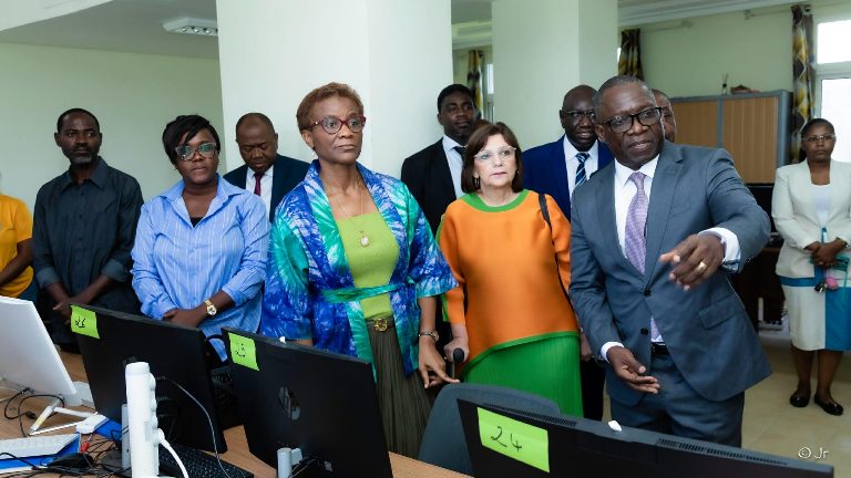 Outre la salle de veille et d’informatique permettant de suivre les données en temps réel, la délégation a également visité la salle technique dédiée à la sécurisation des tablettes. En effet, dans le cadre du RGPL 2026, le Gabon utilise des tablettes numériques ainsi que des imprimantes portables. Plus de 5 000 agents recenseurs ont recours à ces outils pour collecter les informations, géolocaliser les logements et attribuer un identifiant unique à chaque ménage sur l’ensemble du territoire national.