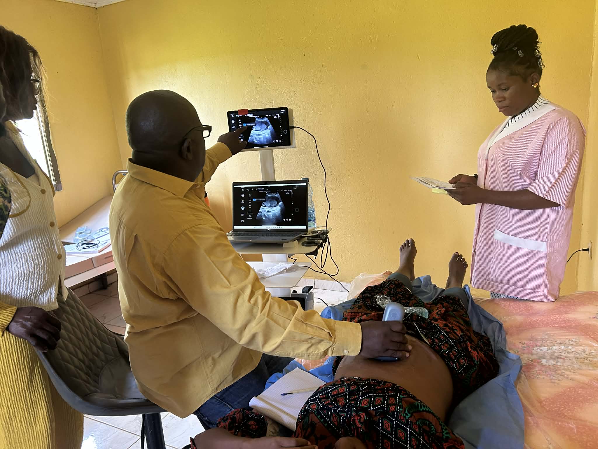 Cet examen, essentiel pour un suivi efficace de la grossesse, est réalisé à l’aide d’un kit numérique. Le dispositif se compose d’une tablette connectée à un ordinateur, ainsi que d’une imprimante permettant la production des clichés générés.