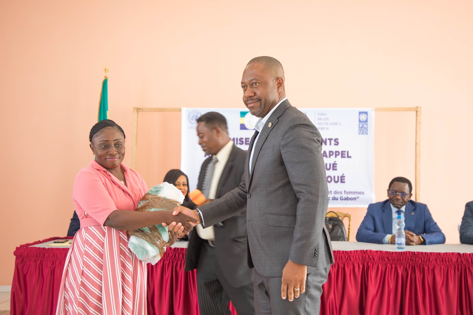Le Gabon accélère la modernisation de son agriculture. Le ministre de l’Agriculture Pacôme Kossy, accompagné de sa collègue Zenaba Gninga Chaning ministre du Commerce, du PNUD et les partenaires du fonds IBSA a procédé à la distribution d’équipements agricoles et au lancement d’un programme d’accompagnement technique afin de renforcer la filière manioc, soutenir l’entrepreneuriat local et limiter les importations.